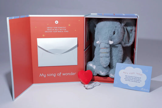 Milody is een knuffel met muziek die jouw kindje urenlang plezier en magie zal brengen. Dankzij de meegeleverde USB-kabel kun je het gepersonaliseerde liedje eenvoudig opladen en keer op keer afspelen. Zo blijft het liedje altijd mooi klinken en kun je volop genieten van muzikale momenten met je kleintje.